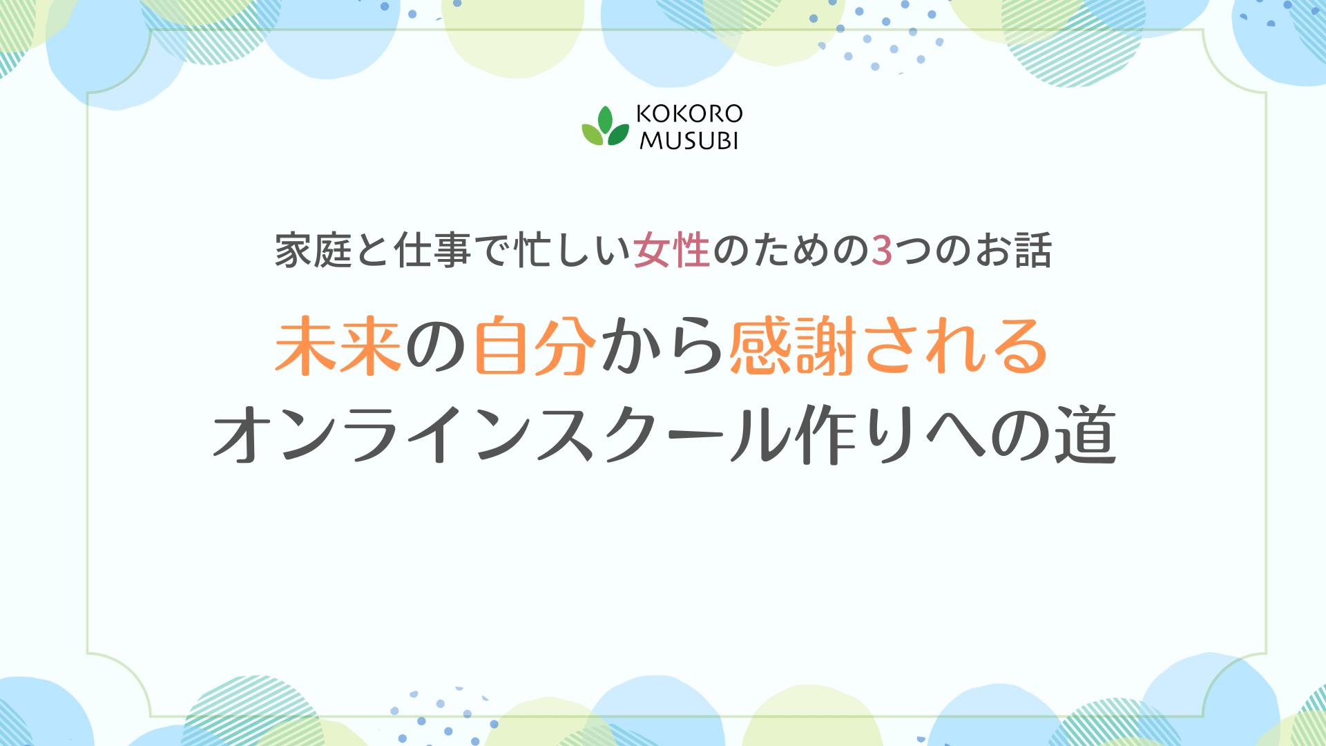 KOKORO MUSUBIオンラインスクールでは家族を大切にし,ご自身の仕事も一生懸命にされている女性を安心安全の環境の中でサポートをしております。